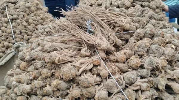 2、今天黄芪上货量与上一集差不多,大约有45-50吨货源出售。市场人流量基本稳定,今天有陇西客商采购毛芪货源;本地经营户少量采购股子货源,以随销随购为主。本地企业、加工户按需购进节子货源,成交货源不多。整体交易平缓,成交价格基本稳定。0.6-0.8cm规格黄芪节32-34元/kg,0.8-1.0cm规格黄芪节38-41元/kg;1.0-1.2cm规格黄芪节43-47元/kg;1.2-1.4cm规格黄芪节48-54元/kg;切片毛芪成交价格在23.5-25元/kg,小毛芪成交价格21-22元/kg;净芪成交价格在26-28元/kg;毛二条成交价格在18-20元/kg;净二条成交价格在21-23元/kg。
