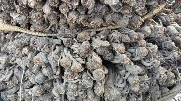 2、今日黄芪上货量基本稳定,大约有80-90吨货源出售。市场人流量不大,依然有陇西客商采购毛芪货源,本地加工户按需购进节子和股子货源,经营户随行要货。节子上货量少,成交货源不多,毛芪、毛二条货源成交量稳定。整体交易平缓,成交价格基本稳定。0.6-0.8cm规格黄芪节30-34元/kg,0.8-1.0cm规格39-42元/kg;1.0-1.2cm规格黄芪节45-48元/kg;1.2-1.4cm规格黄芪节49-55元/kg;毛芪成交价格在18-20元/kg,小毛芪成交价格17-18元/kg,新货毛芪成交价格15-16元/kg左右(干度较好);净芪成交价格在23-25元/kg;毛二条成交价格在10-12元/kg(新),15-16.5元/kg(旧);净二条成交价格在17-19元/kg,新货成交价格14-15.5元/kg。【药市有风险、经营需谨慎】