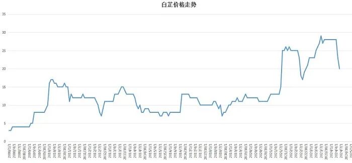 药材市场历史上到现在共有过四次大的周期,分别是1988-1990年,2000年-2003年,2009年-2011年,和现在这轮始于2022年的还在运行的周期。这几个周期都有当时的历史背景和自身内因,以下就分别简单的聊一下。