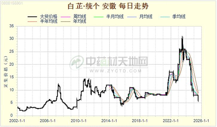 2025年白芷行情的低迷,对于包地大户来讲多亏损,种植户的积极性会进一步受挫,从白芷种子从几十元跌至几元的行情看,来年在地面积会进一步缩减,那么,当前行情值得入手吗?