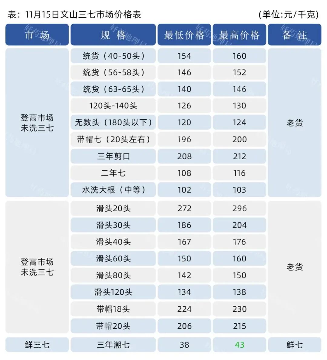 再看下干七,干七上市量再次增多,约150吨以上,新货占90%。成交量差,新货三年剪口成交价为184-196元。新统货成交价为112-132元。直播七(2年-3年)交易价为84-102元。