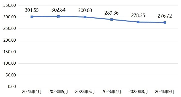 2022年三季度酸枣核价格指数涨跌交替运行,7月指数环比微涨0.66点至283.71点,8月、9月指数先跌后涨,至9月指数为273.41点,相较6月283.05点酸枣核价格指数下跌9.64点。整体来看,三季度酸枣核价格指数虽有起伏,但指数水平整体仍居于高位。从青酸枣价格指数走势看,三季度以来青酸枣进入产新季节,受酸枣仁价高刺激影响,青酸枣价格整体上涨,价格指数水平保持上涨区间,指数由7月109.63点涨至9月210.72点,上涨101.09点,涨幅显著。三季度酸枣产新进入中期,尚未有大量新货入市,市场流通枣核以过往库存为主。同时,酸枣目前仍然以野生为主,没有形成规模化种植,市场供给略有不足,此外在酸枣仁价高刺激以及消费需求增加背景下,酸枣核以及酸枣价格指数未来仍将保持高位波动运行走势。2023年三季度,赞皇酸枣仁价格指数持续下滑,具体运行情况如下图所示:酸枣仁价格指数运行走势