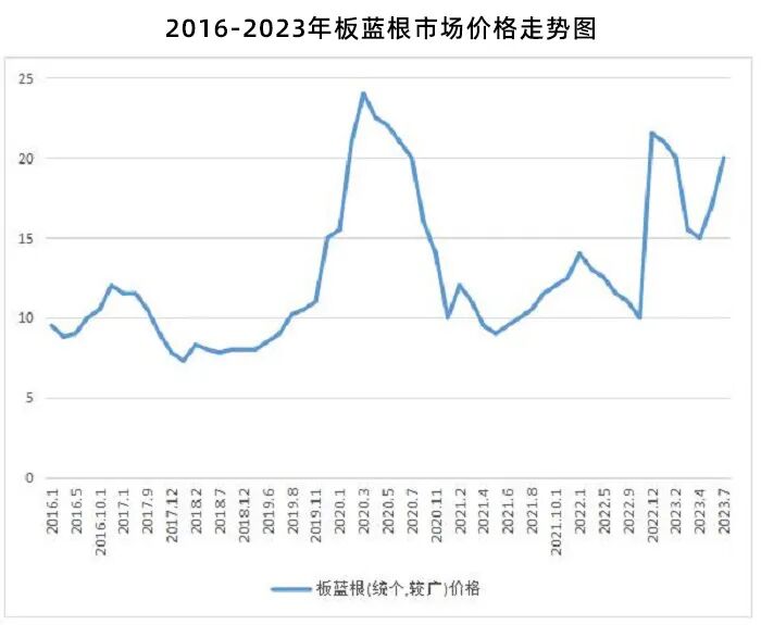 板蓝根,属于短周期的疫情品种,价格波动剧烈,种种迹象表明,2023年主产区因为各种原因出现减种,但这种减种利好已经出现一波上涨,目前价格大致符合减产后板蓝根行情预期。但如果产新后确定减产,商家收购积极性较高,资金充沛,那板蓝根行情还会有上涨动力。