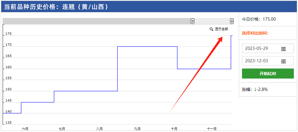 产新期间连翘加工成本过高,2023年没有大的加工户参与其中,持有连翘大部分都是小的加工户。自11月24号开始,连翘产地、市场走动逐渐加快,价格止跌转稳,11月26日连翘价格进而坚挺,现青翘水煮一般货价格在175元左右,合格货190-200元。