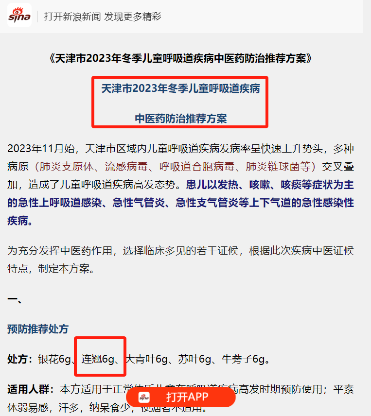 目前进入流感、合胞病毒、腺病毒、支原体感染混合感染呼吸道疾病高发期,国家卫健委、国家市场监督管理总局等部门联合发布公告为应对冬季流感,开展了短缺药品保供稳价工作。天津发表2023年冬季儿童呼吸道疾病中医药推荐处方中有连翘,这些都会增大连翘等有关品种的采购力度和消耗。
