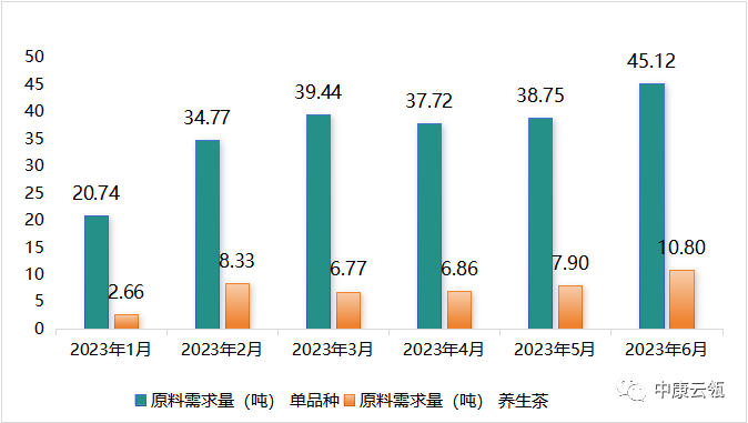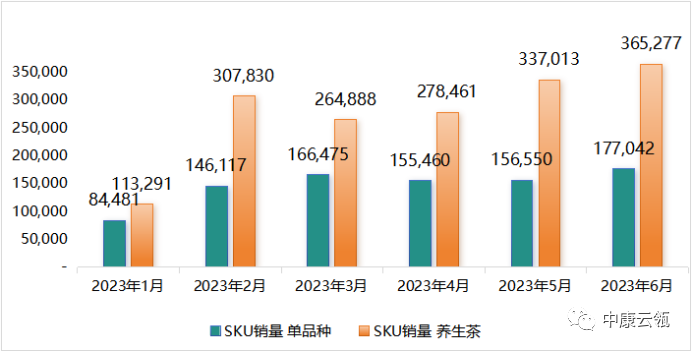 随着近年来人们对保健养生中药材的需求增加,茯苓在电商渠道的销售量不断提升,成为了电商热门品类养生茶的常见配方之一。本期,中康云瓴中药大数据中心根据茯苓电商数据对该品种做一分析。图1:2023年1-6月电商茯苓相关商品销售量TOP100原料消耗量从图1可以看到,2023年1-6月,淘宝天猫平台销量排名前100位茯苓商品(包含配方中有茯苓的养生茶)折合茯苓药材消耗量为259.84吨。以此估算,2023年上半年,仅电商平台销售的茯苓相关商品折合茯苓药材总量约为480吨,全年电商渠道茯苓原料消耗量预计近1000吨,相比2022年茯苓40000吨左右的产量,占比仅2.5%。从淘宝天猫平台茯苓销售量来看,6月是2023年上半年茯苓销量最高的月份。6月入夏,花茶养生需求激增,这类商品传统销售旺季到来。图2:2023年1-6月淘宝天猫平台销量TOP 100茯苓相关商品SKU销售数量2023年1-6月,淘宝天猫平台上架茯苓商品数共 3723个,SKU总销量156.9万个,其中销量TOP 100的SKU销量88.6万个,占比56.48%。2023年1-6月,淘宝天猫平台含茯苓原料的养生茶销量TOP 100的商品SKU销量166.7万个,养生茶产品消费基数更大。图3:2023年上半年淘宝天猫平台茯苓(单品)商品价格段销量分析图4:2023年上半年淘宝天猫平台茯苓(养生茶)商品价格段销量分析从TOP100茯苓(单品)销售价格区间来看,SKU价格以10-20元为主,10-20元之间销售数量31.3万个,占比35.3%。TOP100茯苓(养生茶)销售价格则以20-50元为主,20-50元之间SKU销售数量为99.6万个,占比59.74%。图5:2023年1-6月淘宝天猫平台茯苓(单品)商品销量价格段区间分布从上半年每个月茯苓(单品)价格带分布变化来看,随着茯苓原料价格下滑,前期高价库存慢慢消耗,商家进货成本降低,2023年4月后,0-10元价格带销售量逐步增加,同时,卖家的“6.18”促销活动也导致10-20价格带销量降低。图6:2023年上半年销量TOP 100茯苓(单品)销量规格区间分布图7:2023年上半年销量TOP 100茯苓(养生茶)销量规格区间分布TOP100茯苓(单品)SKU的重量平均0.244千克。从图5可以看出,茯苓主要还是以小包装销售为主,0-200克销量占比超过60%,基本接近每一单平均重量。同样,由于茯苓养生茶品种原料较多,200-300克销量最大,占比超过40%。表1:2023年上半年茯苓(单品)销量排名TOP102023年上半年,淘宝天猫平台销量TOP100茯苓(单品)销售额为1930万元,占茯苓(单品)品类总销售额的37.58%。TOP100茯苓(单品)SKU均价为21.78元,茯苓(单品)品类SKU均价为32.74元。图8:茯苓2017-2023年药材市场价格走势(单位:元/千克)随着种植技术的成熟,茯苓生长周期已经缩短,下种后一般经6-8个月的生长即可采收,每年可产新两次,分别在春季和秋季,几乎全年都可加工,货源可保证持续供应。2023年1-6月,淘宝天猫平台销量top100茯苓(单品)平均售价约89元/千克,与药材市场上茯苓平均价格28元相比,淘宝商家毛利约在68.5%。综上所述,在药用渠道,茯苓是藿香正气系列的核心原料,也是疫情相关品种,前两年的新冠疫情必然带动其药用渠道需求增长,但到了2023年,药用渠道增长乏力。同时,茯苓又是药食两用品种,是近两年热销的茯苓系列食品,如“茯苓膏”、“茯湿膏”等的核心原料,食品渠道需求保持增长,再加上茯苓行情下跌,商家毛利增加,食品渠道需求量将进一步增长。