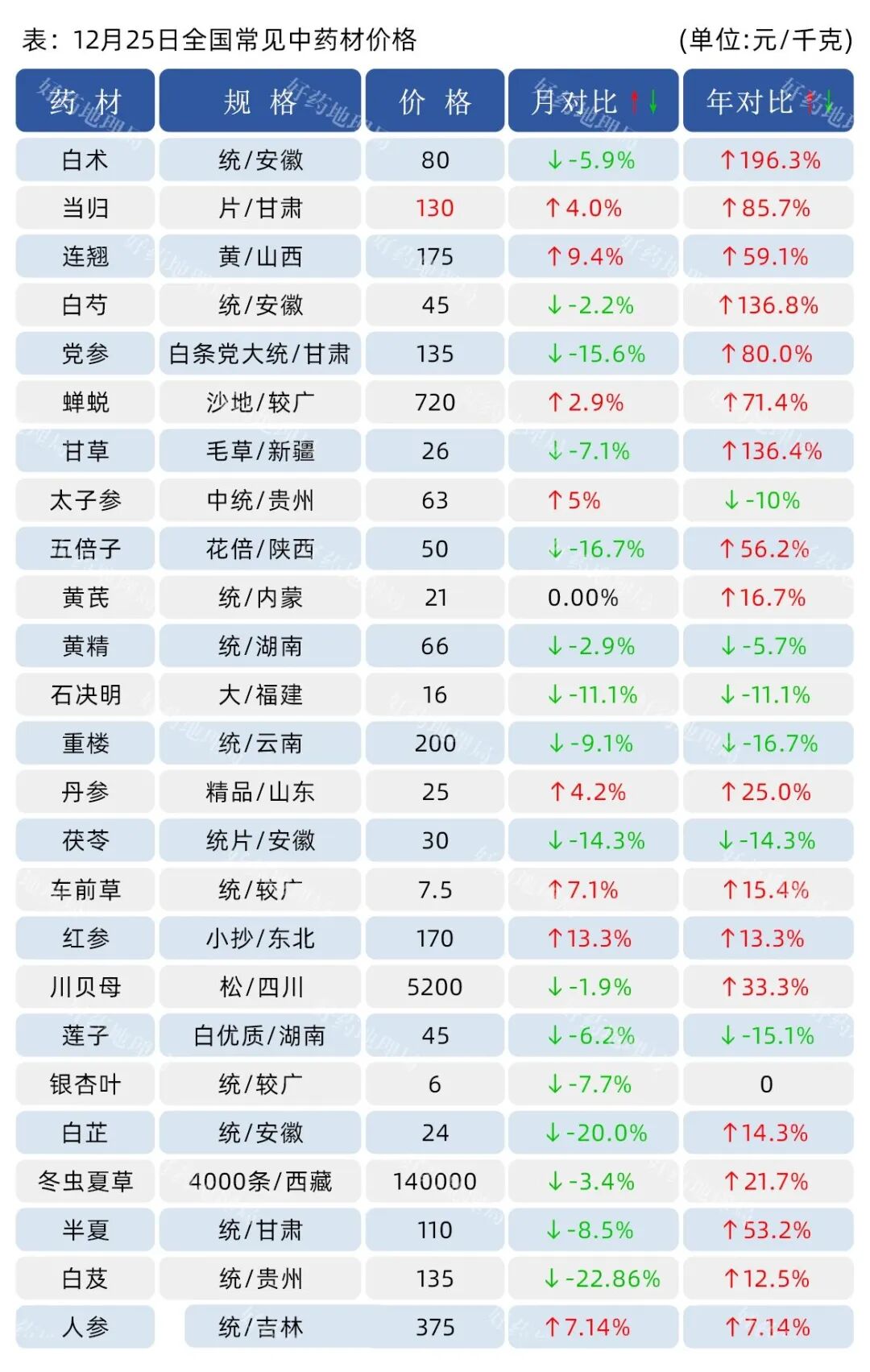 本月经历了“立冬”与“小雪”两个节气,对于中药材来讲,产新结束或处于收尾阶段。尤其是上周,大范围降雪结冰和1218临夏6.2级地震,土地封冻,采收停滞,市场刚需活跃,行情关注者多。