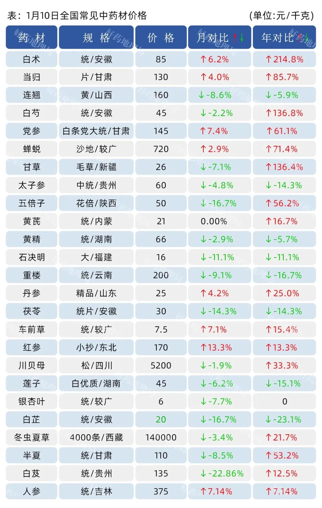尽管有白术的上涨,土贝母的最新科研成果,作为遮羞布。但是中药材整体行情依然是跌势如潮,虽没有大雨如注式的暴跌,但进入冬季到现在,中药材行情一直是阴潮不断。后市,需多关注每个品种的产地和市场的供需关系,尤其要避免信息的不对称性,这样方能在当前的中药材市场中稳中求进,乃至把握先机。