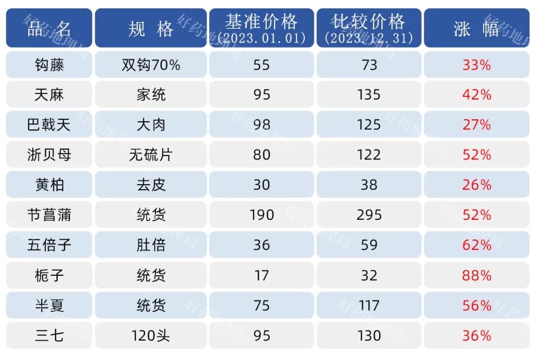 2023年的中药材市场可以说是药世乱世,行情翻倍的品种比比皆是,尤其在同年的上半年,市场交易火爆,各种药材逆势上行,涨价速度之快超乎想象,加上外围资本的不断介入,大量资金涌入市场,带动价格暴涨,导致当前中药材市场行情完全没有规律可循,那么2023年亳州市场又有哪些涨价品种?本期将对一下品种一一分析。