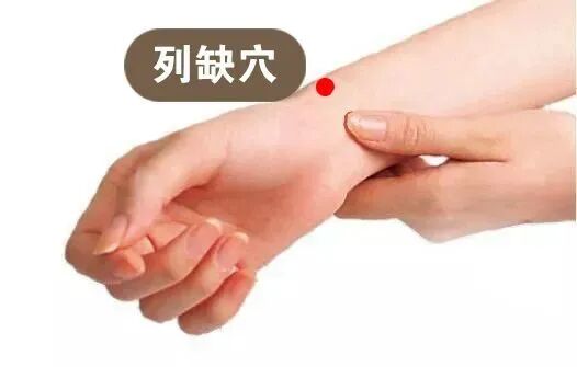 取法:两手虎口自然平直交叉,一手食指按在另一手桡骨茎突上,指尖下凹陷处即为穴。