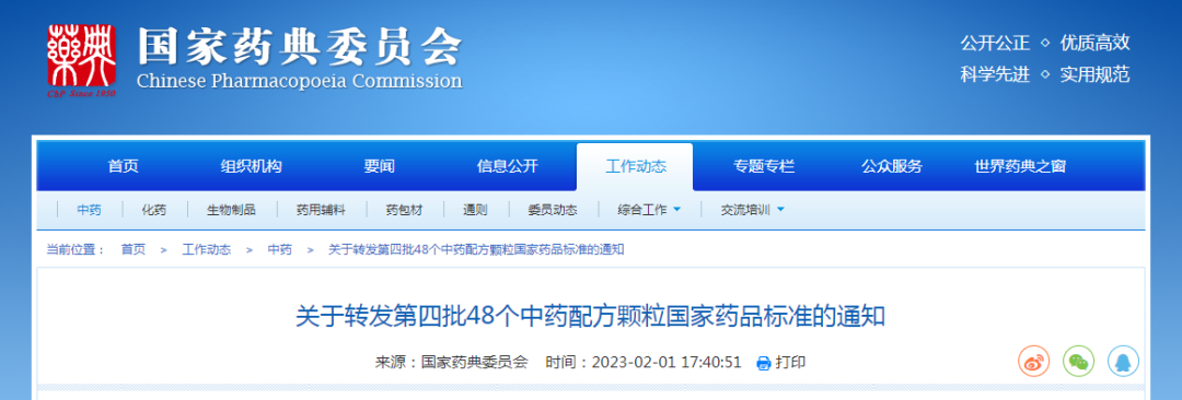 2023年2月1日,国药药典委员会发布《关于转发第四批48个中药配方颗粒国家药品标准的通知》,第四批48个中药配方颗粒国家药品标准已正式颁布。截止目前,中药配方颗粒国家药品标准已有248个。