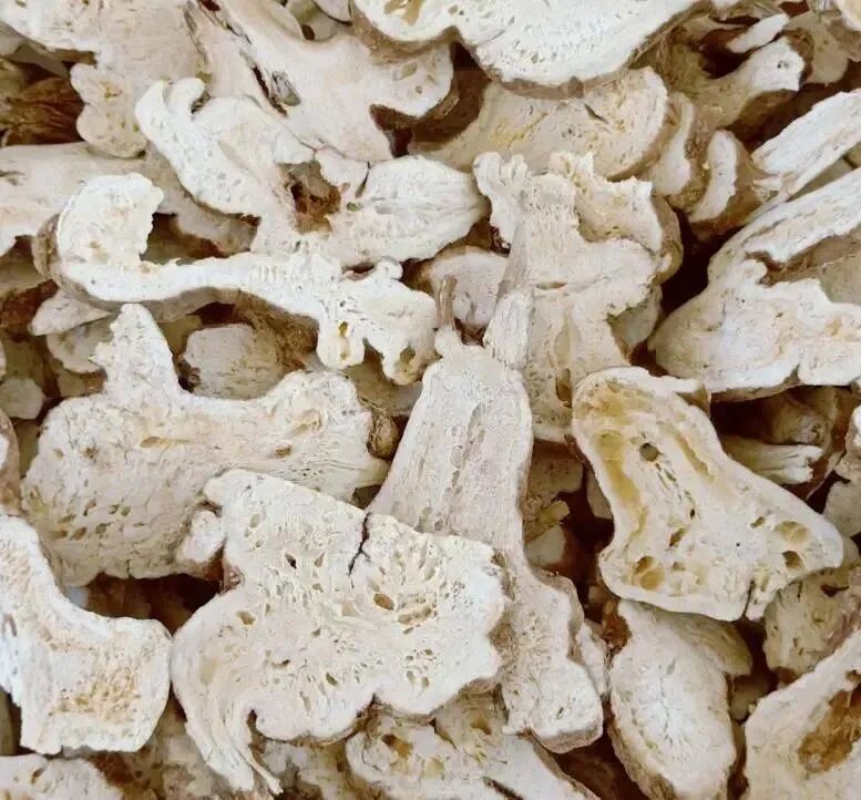 3、厚片:厚度为2~4mm,适宜质地松泡、粘性大、切薄片易破碎的药材,如茯苓、山药、天花粉、泽泻、升麻、大黄等。