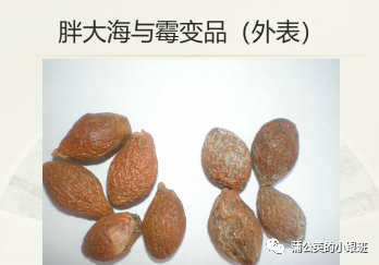 注意:有一类未去种皮(果皮)含脂肪油多的果实种子类药材验收时必须掰开两瓣观察里面是否存在发霉生虫现象。