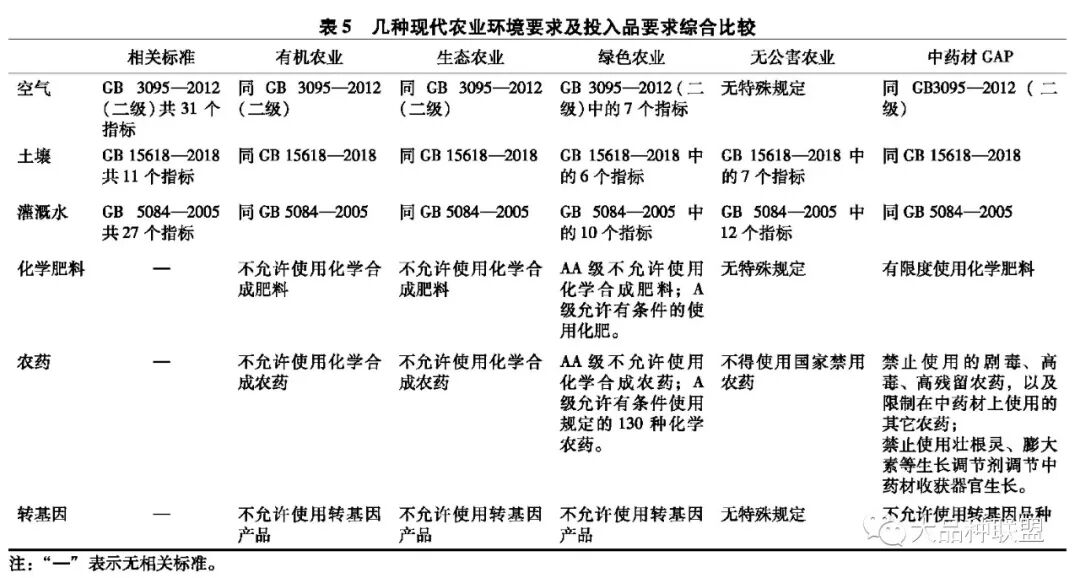 需要说明的是,本文在对几种现代农业对产地环境和投入品要求的比较中发现,中药材GAP对产地环境空气、土壤及灌溉水的要求均达到了有机产品或中药生态农业的要求,但对生产中农药、化肥的管理要求仅达到了无公害农业的要求。即中药材GAP对环境空气、土壤及灌溉水的要求与中药生态农业一致,但对过程中投入品的管理却比生态农业要求宽松很多。