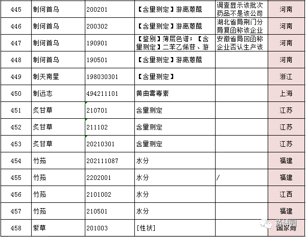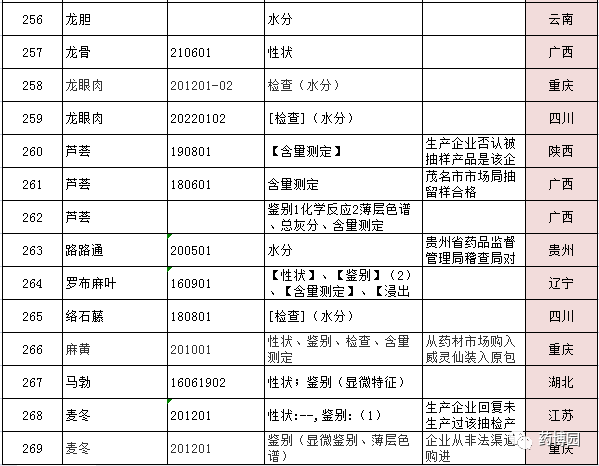本数据为2022年度全国质量不合格的中药材及中药饮片,不涉及其他类别药品包括中成药、化学药、药包材等数据。质量公告时间周期为2022年1月1日-2022年12月31日之间的官网公布的数据。