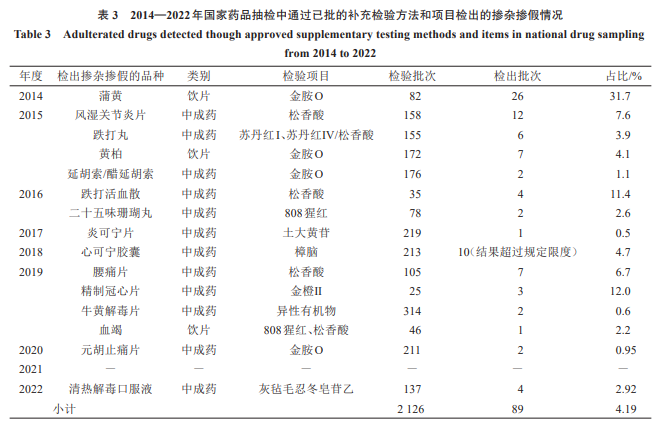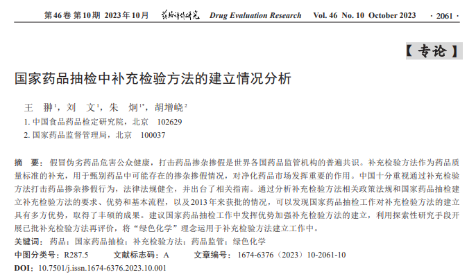 随着科学技术的发展,药品造假手段愈加隐蔽,不法分子往往利用药品标准的检验方法专属性不强或检验项目不全等不足,在药品中掺杂掺假、染色增重。禁止药品掺杂掺假是世界各国的普遍共识。美国、欧盟等国家和地区药品管理法规中均明令禁止这一行为,其监管措施包括现场检查和上市后抽检等,其中涉及的检验依据以药典等质量标准为主[1-2]。中国对于可能掺杂掺假的药品,质量标准无法检验时,所借助的重要手段之一为药品补充检验方法和检验项目(下文简称“补充检验方法”)[3]。因此,补充检验方法的建立对打击掺杂掺假,净化药品市场具有重要意义。作为打击假冒伪劣药品和挖掘潜在质量安全风险的重要监管手段,国家药品抽检要求承检机构使用已批准的补充检验方法对药品进行检验[4-5]的同时鼓励承检机构结合监管需要,通过探索性研究积极建立补充检验方法,增强了打击药品掺杂掺假的力量。笔者梳理补充检验方法的相关法律法规和国家药品抽检的建立要求,分析优势和成果,提出进一步加强和完善建立工作的建议,以期为进一步做好国家药品抽检中补充检验方法建立提供参考。为了应对假冒药品带来的风险,国内外药品监管机构出台了相应的政策法规。欧盟委员会颁布的“2011/62/EU指令”(Directive 2011/62/EU),也称《EU-FMD欧盟反假药法案》,要求欧盟成员国境内的制药企业、进口商、批发商和药店制定防范假药的措施,其中包括对药品包装的赋码、药盒设置防篡改安全装置、追溯数据上传及验证等多个重要环节等[6],并且欧盟委员会和欧洲议会随后制定了一系列实施计划,使之逐步完善;美国颁布的《药品供应链安全法案》(DSCSA)要求药物供应链中的企业,包括生产商、分销商、批发商等,对商品进行序列号管理、记录交易历史,并对可疑企业进行现场检查,根据药典中的规格、含量或纯度等对可疑药品进行检验[7]。中国也有相应的政策法规打击假药。《中华人民共和国药品管理法》规定,禁止生产销售假药[8];《中华人民共和国药品管理法实施条例》规定,对有掺杂、掺假嫌疑的药品,在国家药品标准规定的检验方法和检验项目不能检验时,药品检验机构可以补充检验方法和检验项目进行药品检验;经国务院药品监督管理部门批准后,使用补充检验方法和检验项目所得出的检验结果,可以作为药品监督管理部门认定药品质量的依据[9]。早在2003年,原国家食品药品监督管理局发布了《关于报请批准用补充检验方法和项目进行药品检验有关问题的通知》,药品补充检验方法和检验项目工作正式启动[10]。2012年2月,《国家药品安全“十二五”发展规划》[11]要求加强药品补充检验技术的研究,把它作为健全药品检验检测体系的1项措施。2017年2月,《“十三五”国家药品安全规划》[12]要求,根据需要及时制定发布一批药品补充检验方法。2018年1月5日,原国家食品药品监督管理总局根据监管工作需要发布《药品补充检验方法研制指南》[13],以规范和指导药品补充检验方法建立工作,强化检验检测技术对药品监管的支撑作用。2019年7月,国家药品监督管理局发布的《药品质量抽查检验管理办法》[14],鼓励药品检验机构开展药品补充检验方法研究。国家药品抽检探索性研究以问题为导向挖掘药品质量风险,研究新技术、新方法,提高检验技术水平,是科学全面评价药品质量状况的技术手段[15]。近年来,一些利欲熏心的不法分子使用非药用部位或淀粉甚至泥沙等染色后掺入药品牟取暴利,还有使用过苏丹红、金胺O、808猩红等有毒有害的染料染色劣质药品以次充好的情况[16-17]。针对这些不法行为,原国家食品药品监管总局于2014年7月印发了《关于国家药品计划抽验质量分析指导原则的通知》[18],要求药品抽检要以发现质量问题为目标,药品质量研究与分析应以问题为导向,围绕排查质量问题和风险开展探索性研究,结合当前药品监管中的突出矛盾和问题从可能影响药品质量的关键因素和高风险因素入手着力排查和揭示潜在质量隐患。并且《国家药品计划抽验质量分析指导原则》[18]要求承检机构针对处方工艺、现行标准与质量存在的主要或重要缺陷、标准检验发现的问题开展研究,围绕质量评价、质量控制和质量提高来进行,并提出解决问题的办法或建议,探索性研究的内容应当是影响本品质量的关键因素,对于新建的补充检验方法要说明探索性研究项目详细研究方法,样品与对照品的典型图谱或照片,研究结果与结论,并按中国药典附录进行方法学验证,说明修订或增订检验项目的依据,限度修订或设定的依据,对全部样品进行检验并统计分析检验结果。以上规定为国家药品抽检探索性研究中建立补充检验方法提供了制度保障和指导原则,有利于推动该项工作的开展。国家药品抽检作为我国规模最大、层级最高、涉及面最广的药品上市后抽查检验工作,在探索性研究中建立补充检验方法具有诸多优势,主要包括品种优势、样品量优势、技术优势。国家药品抽检品种的遴选原则包括日常监管中发现问题、不良反应集中、投诉举报较多、舆情关切度高等多个方面。掺杂掺假现象往往是导致上述问题的原因。因此,国家药品抽检对这些药品进行重点抽检在一定程度上可以覆盖需要补充检验方法的品种,日常监管发现主要是中药品种,包括以下3种情况:(1)容易掺杂掺