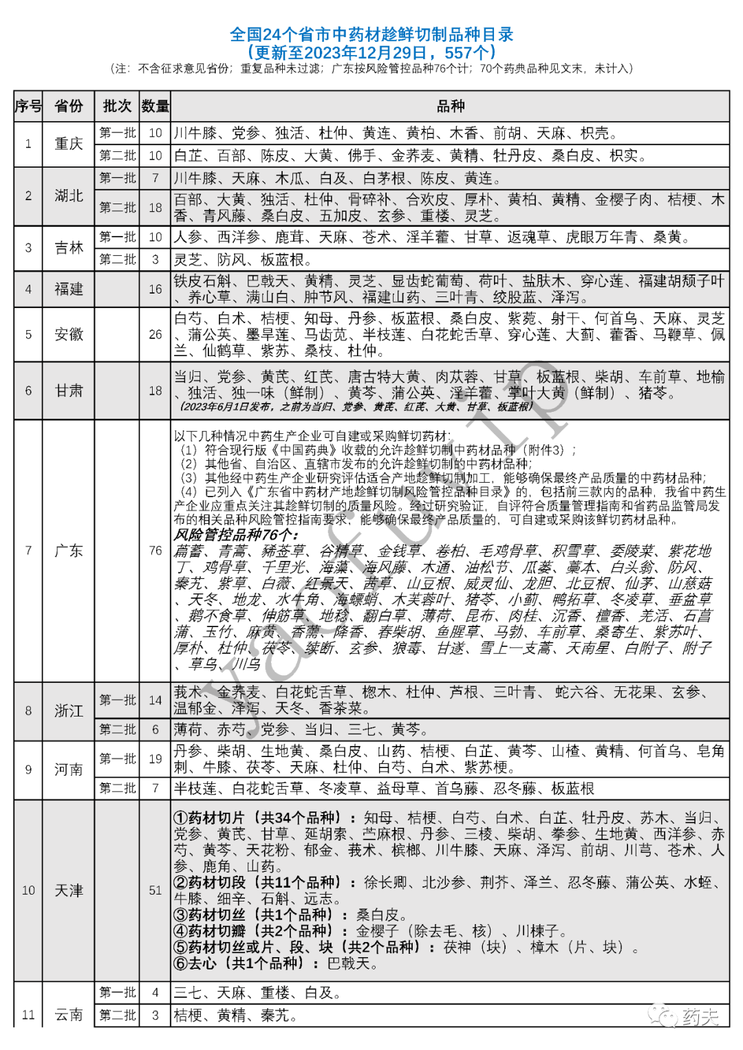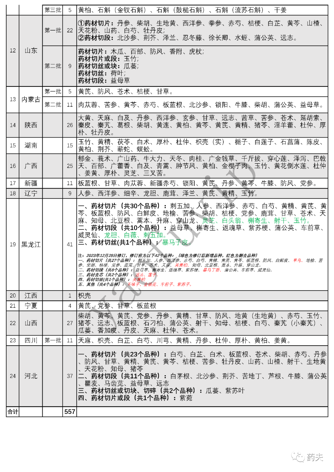 【截至12月29日】最新调整为557个——24省市中药材趁鲜切制品种汇总!