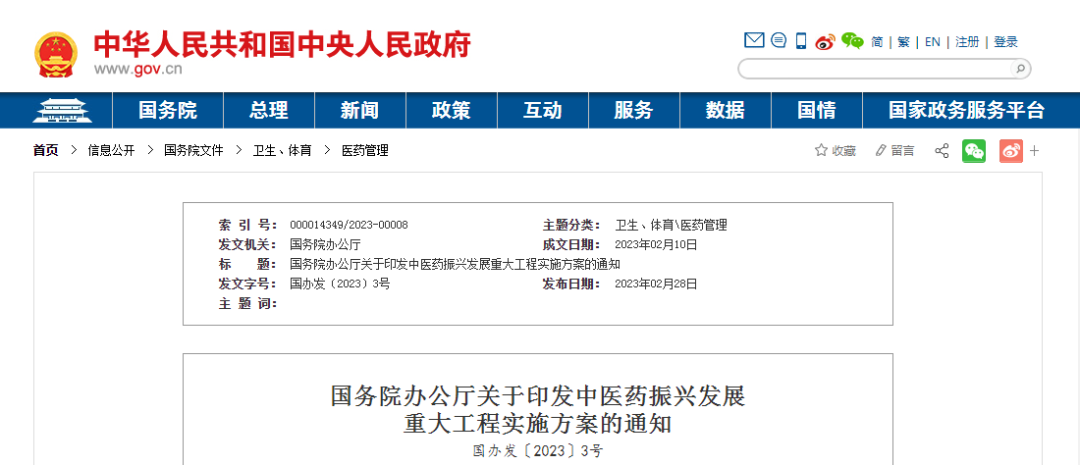 对中医药发展的支持和促进力度