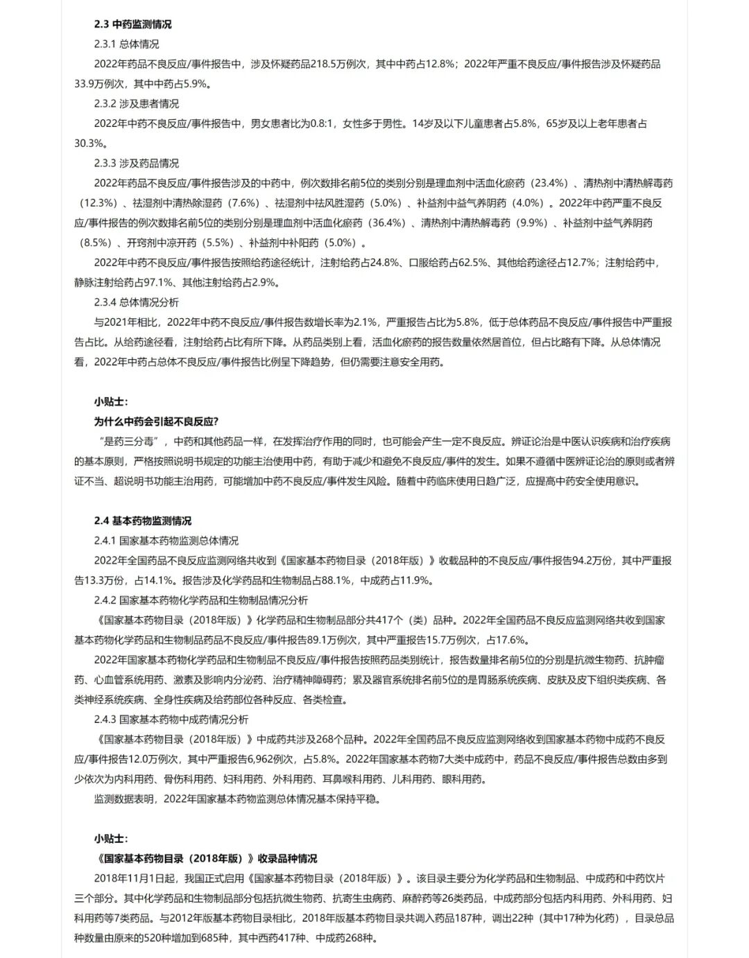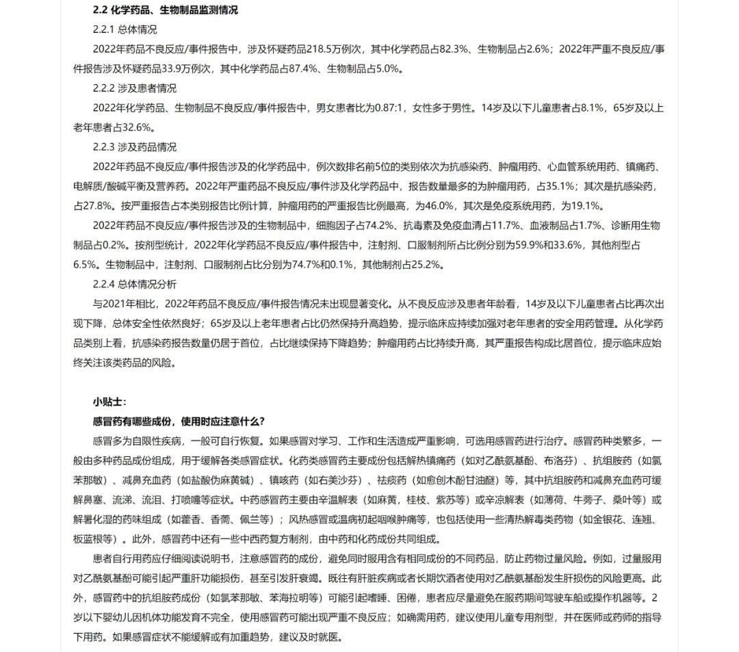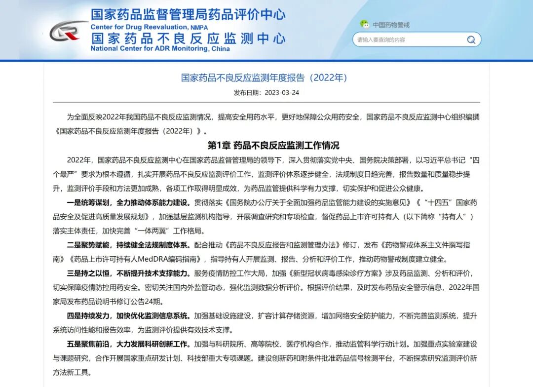 3月24日,国家药品不良反应监测中心发布《国家药品不良反应监测年度报告(2022年)》(以下简称《报告》)。