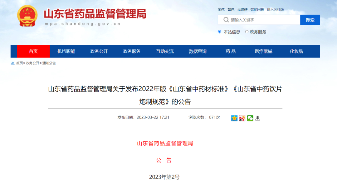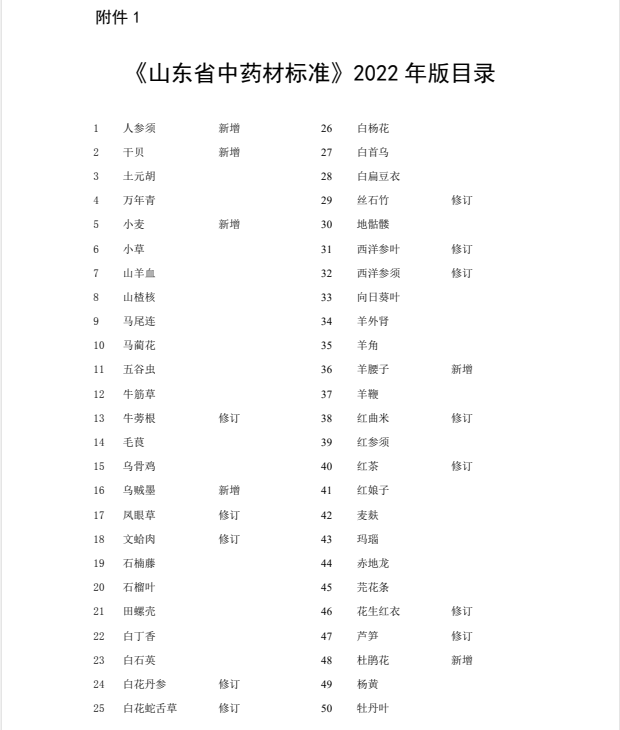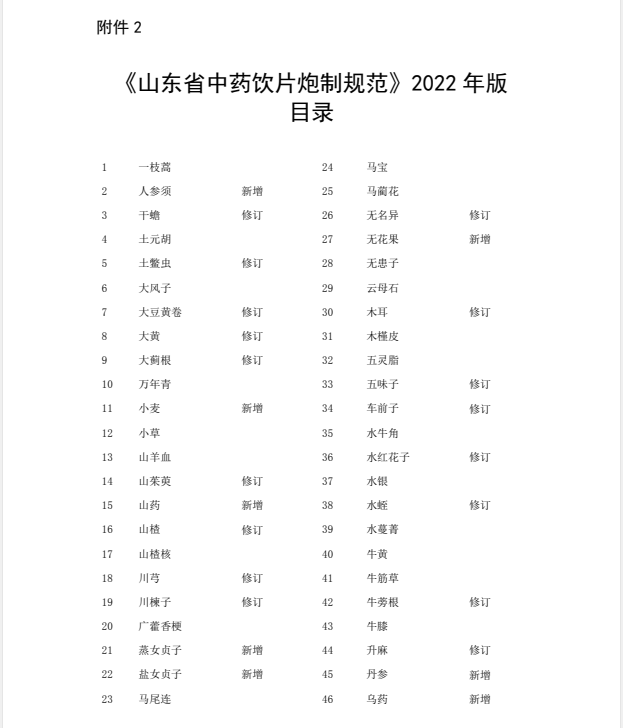 3月22日,山东省药监局发布的2022年版《山东省中药材标准》175个,《山东省中药饮片炮制规范》307个,自2023年7月1日起实施。