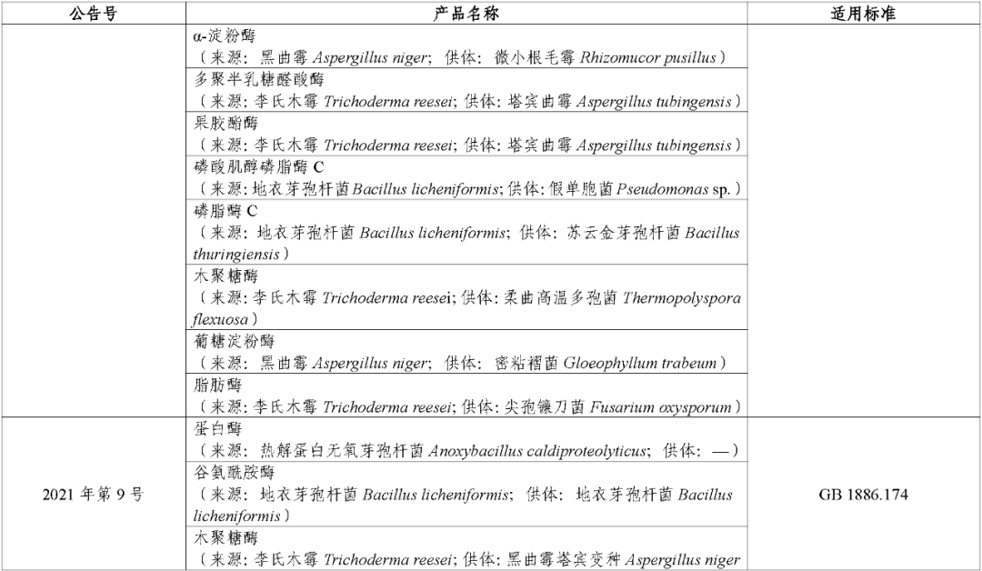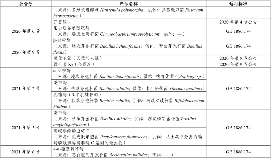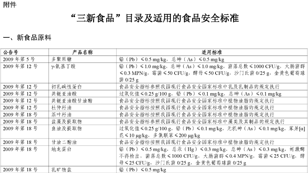 附件:“三新食品”目录及适用的食品安全标准