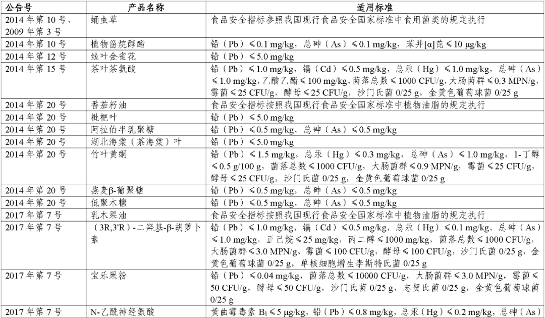 本次“三新食品”适用的食品安全标准梳理主要遵循以下原则: