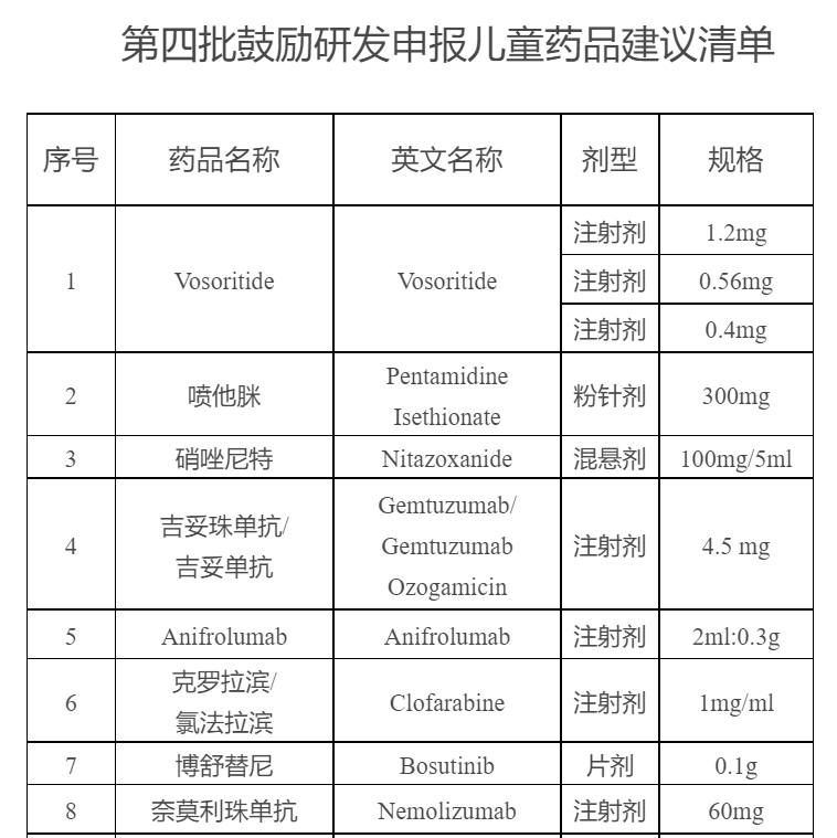 近日,国家卫健委药物政策与基本药物制度司发布《第四批鼓励研发申报儿童药品建议清单》,清单共有29个药品在列,均为尚未在国内注册上市且临床急需儿童用药。