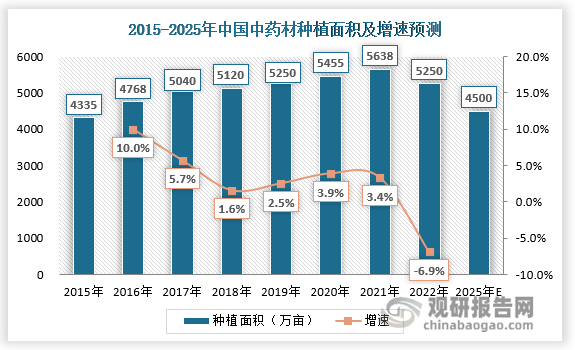 整体来看,虽然疫情导致药材种植、采收、购销流通等受限,制约了中药材种植大面积发展,但也正是疫情的出现,让国家开始重视中药材种植行业的发展。2023年2月28日,国务院办公厅印发《中医药振兴发展重大工程实施方案》,在中药质量提升及产业促进工程方面提出,围绕中药种植、生产、使用全过程,充分发挥科技支撑引领作用,加快促进中药材种业发展,大力推进中药材规范种植,提升中药饮片和中成药质量,推动中药产业高质量发展。在政策利好下,预计2023年我国中药材种植行业将快速发展,到2025年,全国中药材面积稳定在4500万亩左右,道地药材面积占总面积50%以上。
