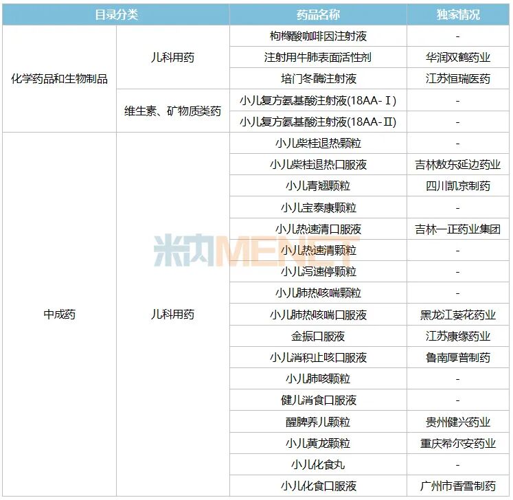 湖南方盛制药的小儿荆杏止咳颗粒用于治疗小儿外感咳嗽,天士力的芍麻止痉颗粒用于治疗儿童抽动症,两款儿科中药新药从2020年起进入国家医保谈判目录,券商预测两款新药均具备10亿元的市场潜力,若顺利进入国家基药目录将加快产品放量。