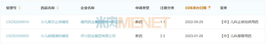 目前有两款儿科中药新药报产在审,涉及儿科止咳祛痰用药和儿科感冒用药两大热门市场。