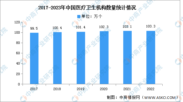 2022年末全国共有医疗卫生机构103.3万个,其中医院3.7万个,在医院中有公立医院1.2万个,民营医院2.5万个;基层医疗卫生机构98.0万个,其中乡镇卫生院3.4万个,社区卫生服务中心(站)3.6万个,门诊部(所)32.1万个,村卫生室58.8万个;专业公共卫生机构1.3万个,其中疾病预防控制中心3385个,卫生监督所(中心)2796个。