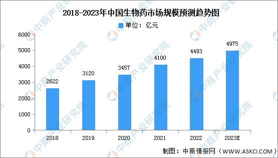 近年来,我国生物药在研发投入逐渐增大的情况下,新药临床试验和上市数量逐年攀升,一系列支持政策的推出将助力生物药市场的进一步发展。数据显示,2022年我国生物药市场规模达到4493亿元,预计其市场规模将在2023年达到4975亿元。