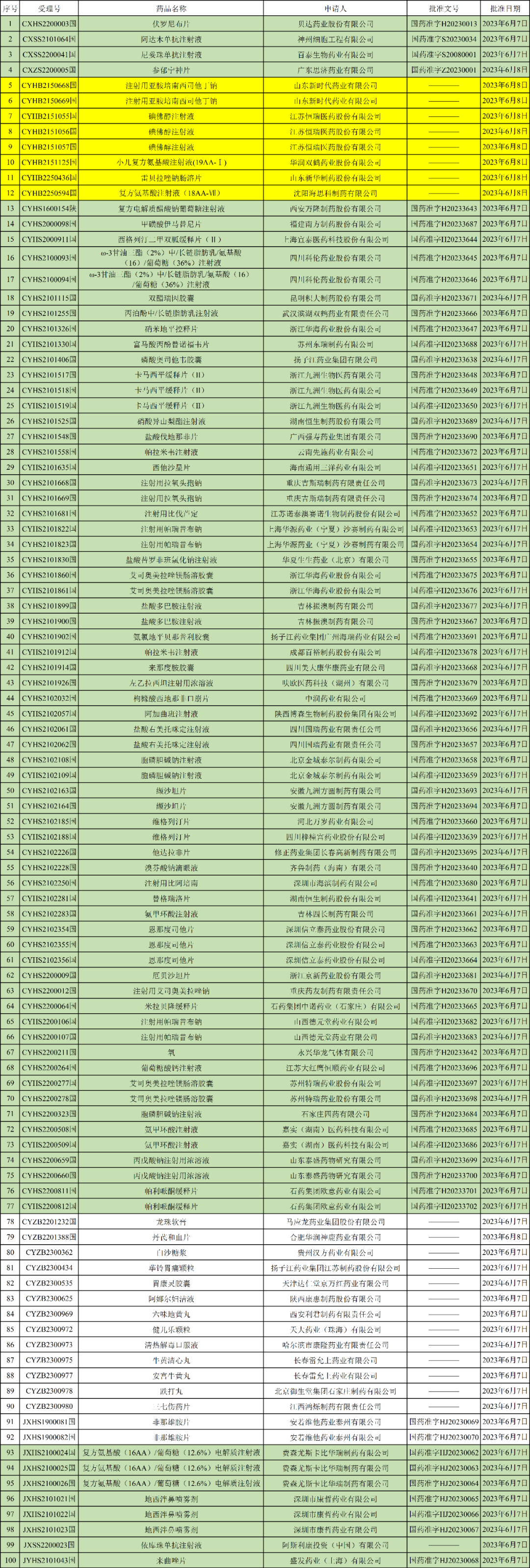 刚刚,国家药监局发布2023年06月12日药品批准证明文件送达信息,本批次共有100个受理号获批,其中8个为一致性评价受理号,包括: