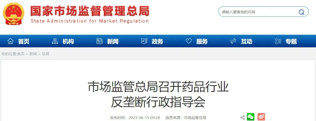 市监总局召开药品行业反垄断指导会,要求药企反垄断全面自查!