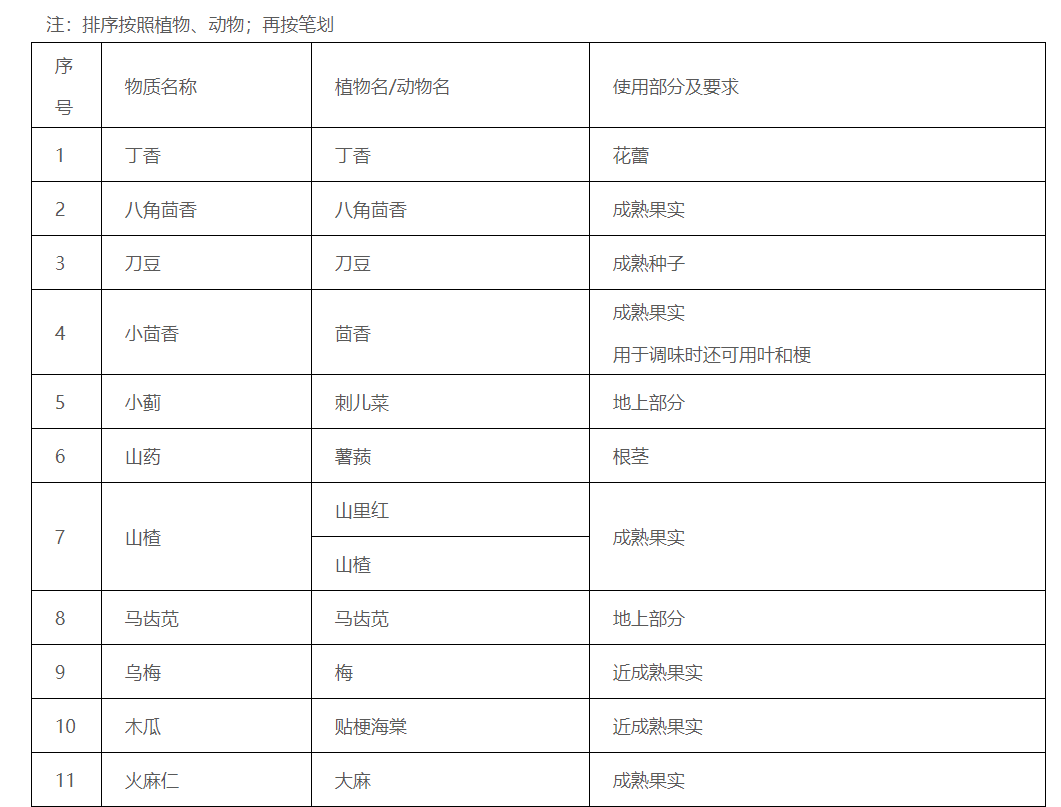 备注:《按照传统既是食品又是中药材物质目录》新增物质纳入依据;