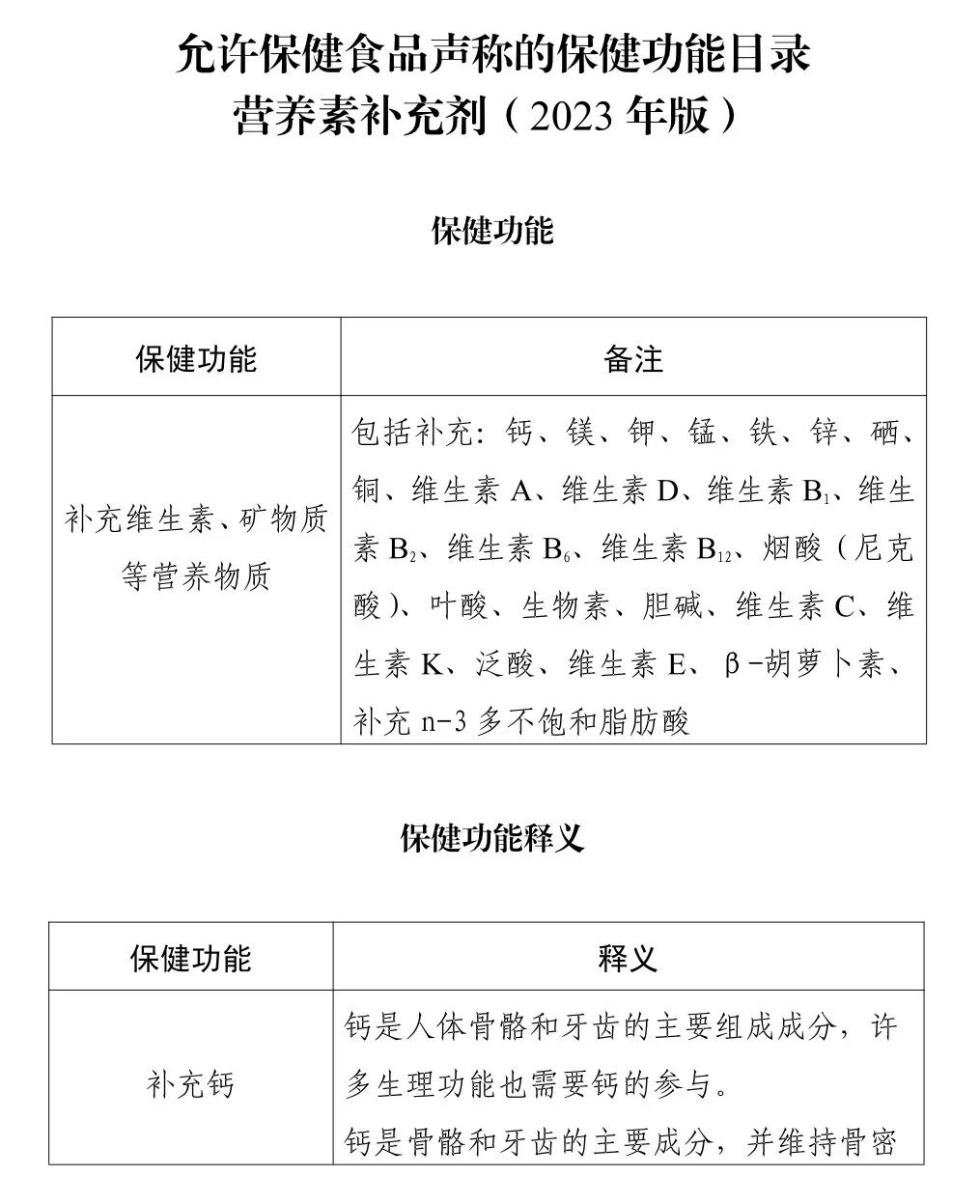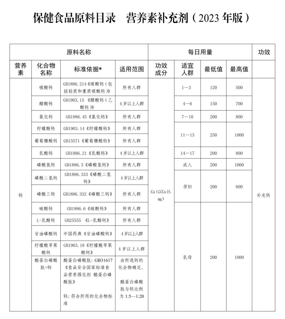 附件1:《保健食品原料目录 营养素补充剂(2023年版)》
