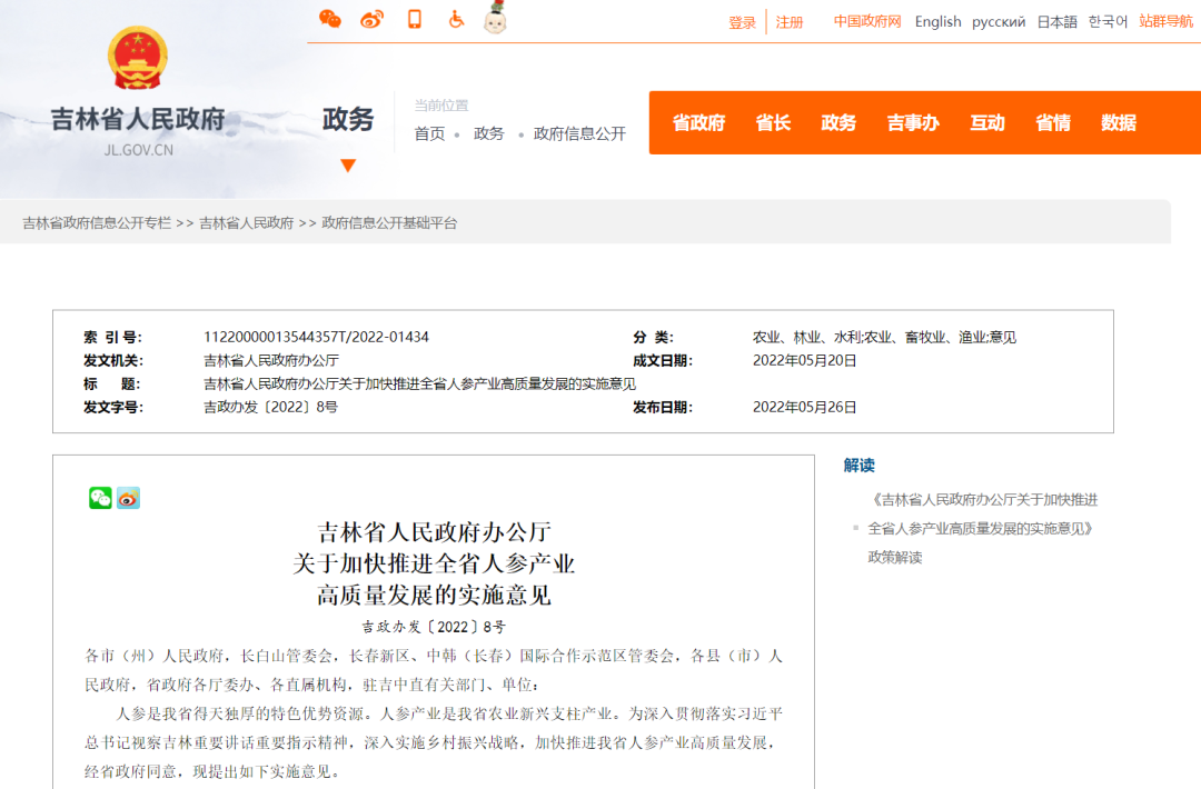 关于加快推进全省人参产业