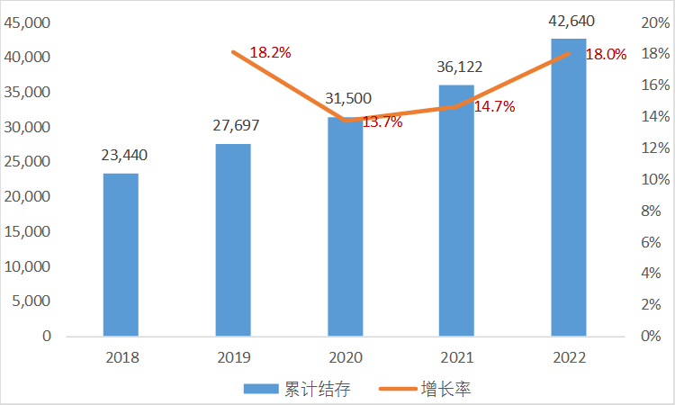 图表5:2018-2022年中国基本医疗保险基金累计结存 (单位:亿元)