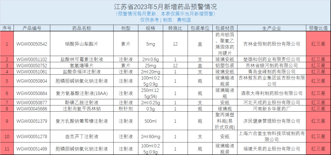 综合此前四个月的预警情况公示,今年累计有363个药品已触发江苏预警机制,共覆盖233个品种、244家药企(已去重,下同),其中48个药品被暂停交易资格,覆盖生脉饮、利巴韦林、酚磺乙胺等37个品种,涉及46家药企。