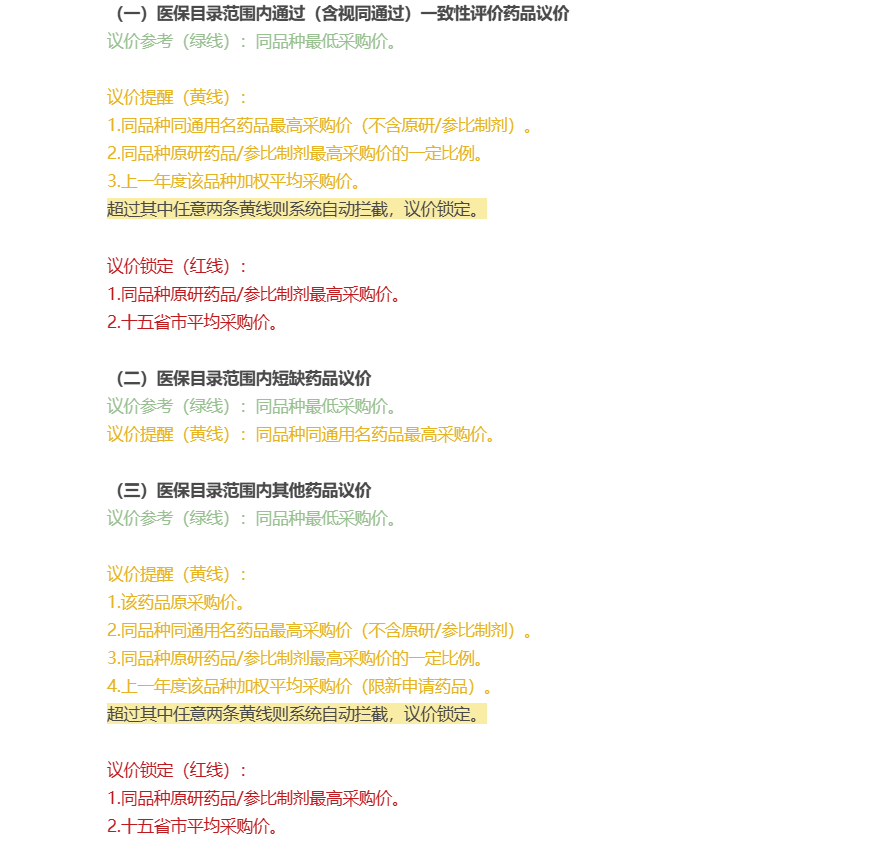 按照上海去年3月发布的《关于进一步优化本市药品分类挂网全面议价采购有关事项的通知》等文件要求,议价超“黄线”品种仅作为给医疗机构采购的提醒,但当药品价格超过对应分类下的任意两条黄线时,系统将自动拦截,议价锁定。