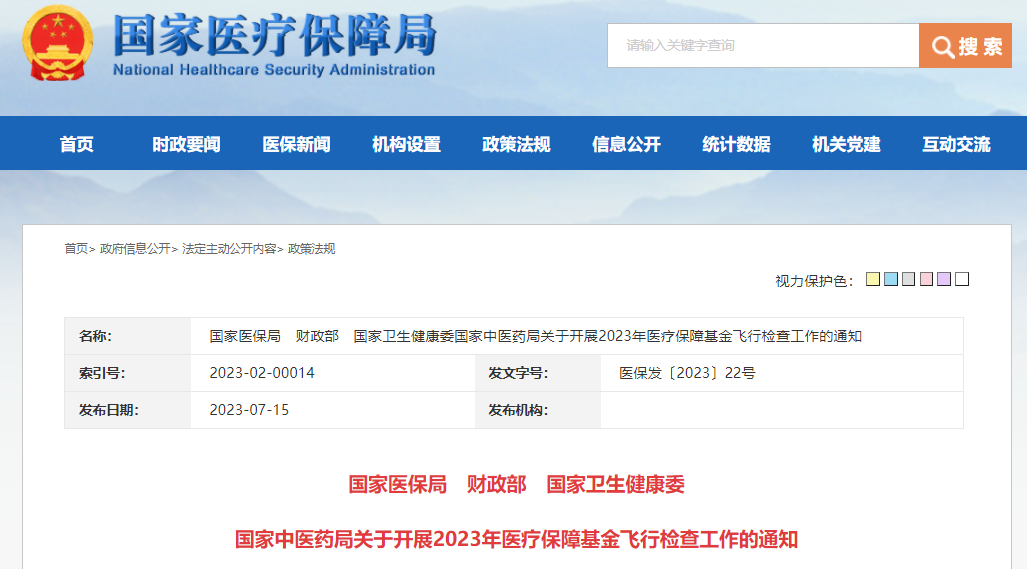 7月15日,国家医保局网站正式发布了今年的医保飞检工作方案。国家医保局、财政部、国家卫生健康委、国家中医药局四部门联合印发《关于开展2023年医疗保障基金飞行检查工作的通知》,决定在全国范围内组织开展2023年医疗保障基金飞行检查工作,并制定如下工作方案。今年检查对象为定点医疗机构、定点零售药店、医保经办机构。在检查对象选取上分两步走,先从各省范围内选择医保基金用量较大的地级市作为被检城市,再从被检城市医保基金支付排名靠前的定点医药机构中现场抽取2家医院和1家药店,连同当地市级医保经办机构共同作为被检单位。同时,《方案》强调,检查组可根据举报线索或智能监控疑点提示等直接确定被检单位。今年选定医学影像检查、临床检查、康复三个领域作为检查重点。检查范围为2021年1月1日—2022年12月31日期间医保基金使用和管理情况。《方案》强调,必要时检查组可追溯检查以前年度或延伸检查至2023年度。其中针对定点医疗机构,主要检查内控管理、财务管理、药品耗材集中带量采购执行情况、医保基金使用过程中涉及的医疗服务行为和收费行为等。为强化飞行检查对医保基金管理的推动作用,今年还将定点医疗机构是否规范使用全国统一的医保信息业务编码纳入检查内容。针对定点零售药店,主要检查是否存在违规刷卡、伪造信息、串换收费、为非定点机构结算医保费用等行为。针对医保经办机构,主要检查对定点医药机构和参保人申报的费用日常审核、支付以及核查情况,DRG/DIP付费方式下年度预算额度确定情况,智能审核系统使用情况等。采取“省份交叉互检”模式,通过抽签方式确定参检和被检省份。飞行检查实行组长负责制,原则上每组检查人数控制在60人以内,检查时间控制在10天以内,视情况可延长检查天数。计划在2023年8月-2023年12月期间,实现对全国31个省(自治区、直辖市)和新疆生产建设兵团全覆盖检查。计划在2023年7月份完成前期筹备工作,在2023年8—12月份完成现场检查工作,在2024年1-3月份完成后续总结工作。1、2023年国家级飞检内容有变,主要针对医学影像、临床查验、康复三个领域;而2022年则聚焦对定点医疗机构血液透析、高值医用耗材(骨科、心内科)等领域。2、全国各省份全部覆盖。根据国家医疗保障局2022年度医保基金飞行检查情况公告,全年共组织24个飞检组,完成对华中科技大学同济医学院附属同济医院的专项飞检和赴全国23个省份的年度飞检。今年却明确实现对全国31个省(自治区、直辖市)和新疆生产建设兵团全覆盖检查。3、对药品、耗材带量执行情况和全国统一医保信息业务编码情况也将检查,对未来带量产品执行和耗材编码统一影响几何值得后续关注。4、每个小组飞检小组人数规模进一步由40人增加到60人,专业性更强,检查力度更大。