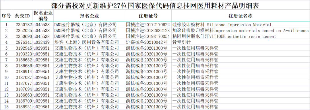 对于企业而言,医保编码的申报、维护工作已成必要环节。7月13日,广东省药品交易中心发布《关于挂网采购医用耗材贯彻落实国家医保耗材标准编码应用工作的通知》(以下简称《通知》)。《通知》明确,2023年7月13日至2023年7月27日,尚未在省平台医用耗材交易系统维护国家医保代码但已通过国家医保信息业务编码标准数据库动态维护平台(以下简称国家医保编码信息平台)动态维护审核的挂网医用耗材,应维护产品对应的20位/27位国家医保代码。根据《通知》,未在省平台医用耗材交易系统维护国家医保代码的医用耗材(国家医保代码尚未覆盖的品类除外),暂不予挂网交易。《通知》指出,已在省平台医用耗材交易系统维护国家医保代码的挂网医用耗材请按照国家医保编码信息平台最新公布或审核通过的国家医保代码自行校对,如有更新的应及时进行更新。属于国家医保代码已覆盖的品类但尚未获得国家医保代码的挂网医用耗材,应尽快按照国家相关文件的要求在国家医保编码信息平台申报国家医保代码,审核通过后及时在省平台进行维护。目前,国家医保编码信息平台正在定期更新,全国多地也在积极推进医保编码的落地工作。对于企业而言,如果不及时按照规定有序申报和维护医保编码,可能会对后续的挂网交易产生影响。7月12日,河北发布《关于常态化开展全品种医用耗材挂网工作的通知》,其中规定,挂网耗材产品范围包括:获得药品监督管理部门注册批准,医疗机构临床需要,属于国家医保医用耗材分类范围,并获得相应代码的医用耗材产品;鼓励通过国家创新医疗器械特别审批程序并获得注册或备案的创新医用耗材在我省申请挂网;河北省医疗服务价格项目内国家未赋码的医用耗材,暂按我省有关要求执行;河北另收费用一次性物品管理目录内的医用耗材,需获得国家医保医用耗材代码才可挂网。7月6日,重庆药品交易所发布《关于进一步做好维护国家医保医用耗材代码工作的通知》。其中规定,国家医保医用耗材代码维护范围为属于国家医保医用耗材分类目录范围,企业已在国家医保局“医保医用耗材分类与代码数据库动态维护”维护且通过公示进入国家医保医用耗材分类与代码数据库的产品。如后续国家医疗保障局公示新批次国家医保医用耗材分类与代码数据信息,此项工作继续进行。重庆药品交易所还特别提示,“请相关企业高度重视,务必确保信息填报及时、准确,编码信息须与医保医用耗材分类与代码数据库保持一致,以免影响后续产品交易”。今年6月,上海阳光医药采购网公布国家医保医用耗材分类代码核对信息(第一批),根据上海此前发布的《关于本市进一步做好国家医保药品及医用耗材分类代码核对工作的提示》,后续国家编码将用于采购、配送、结算等工作。尚无国家医保药品及医用耗材信息业务编码的产品,应按照国家医疗保障局《关于开展医保药品、医用耗材产品信息维护的通知》要求,尽快向国家医疗保障局申报。今年3月,山东省医保局发布《关于加强药品和医用耗材集中带量采购全流程管理的通知》,其中指出,强化医疗保障信息业务编码标准在招采业务领域的落地应用,推进医疗机构、生产企业、产品信息等基础信息的全业务流程贯通,带码入库、带码使用、带码结算,实现编码标准“纵向全贯通、横向全覆盖”,进一步提升招采业务信息化标准化水平。湖北省明确,3月1日起,湖北省药械集采平台将设置“无医保分类代码产品目录”,未及时维护医保分类代码的挂网产品将从挂网目录中移除。耗材医保编码的大范围落地,将彻底改变医用耗材监管环境,数据信息的汇总也将带来更加精细化的耗材管理。中国医药物资协会医疗器械分会秘书长陈红彦近期对人民日报健康客户端记者表示,“现行耗材注册批件中规格型号种类繁多、数量庞大,甚至同一个批件下有几万个品规,难以进行有效管理,医用耗材正进一步加强‘一品一码’的实行,有助于全国耗材统一管理局面的形成,将会有效改善行业混乱无序、效率低下、资源浪费等乱象。”上述人士分析,以前很多医用耗材由于规格、类型的不同,医保部门在采购的时候,会出现价格虚高的情况,尤其是一些“僵尸”产品及交易量小的产品,很难把控准确的价格,现在“一品一码”对产品的信息监测、价格改革、使用规范、流通治理的标准化,对于集采提供了非常可靠的基础数据支持。国家医保局副局长李滔此前指出,统一医用耗材分类和编码对促进医保精细化管理,特别是治理高值医用耗材有着重要的基础性作用。通过统一分类和编码实现各地、各医疗机构之间数据的互认,推动高值医用耗材在地区间、医疗机构间的数据比较,信息公开透明。此外,可以强化对生产流通使用各个环节的监督管理,促进各部门联动共同做好监管。可以实现国家和各省市之间高值医用耗材的数据互通,开展大数据分析运用,提高治理能力,也可以大大减轻企业在各地招标采购环节重复报送产品信息的压力和负担。今年5月,国家医保局发布《关于做好基本医疗保险医用耗材支付管理有关工作的通知(征求意见稿)》,其中明确,各省要扎实推进国家医保医用耗材代码应用,及时按照国家医保局制定的医用耗材分类与代码数据库做好更新,提高医用耗材代码应用的准确性、规范性,实现医用耗材带码采购、