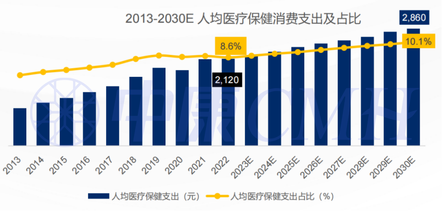 “每届西普会的主题都是中康人对行业观察的总结以及对未来的期许,而本次西普会的主题定为‘二元协同重塑产业—开启个人健康主体责任新时代’,我们首先看到的是市场需求的剧烈变化。”李俊国表示,中国的政治、经济、文化、教育的稳步提升构成了国人健康素养的基本底色。我们预计,到2030年人均医疗保健支出占人均消费支出将从2022年的8.6%上升到10.1%,人们在提升生活质量的时候更加关注自身的健康。需求的剧烈变化,正在推动健康产业整体的跃迁。