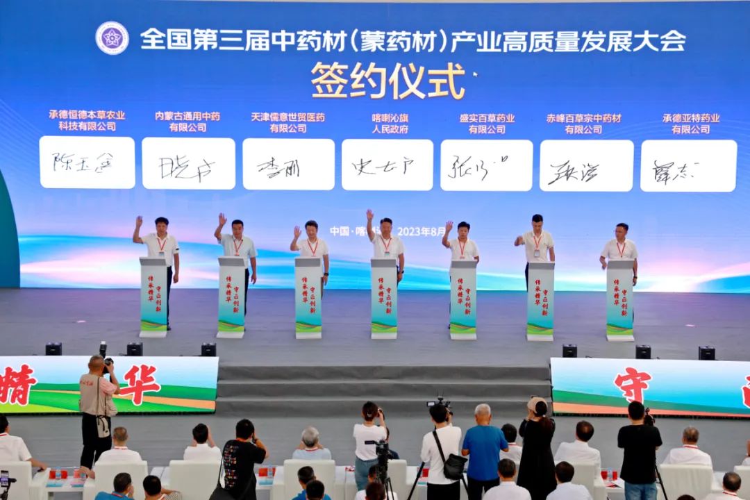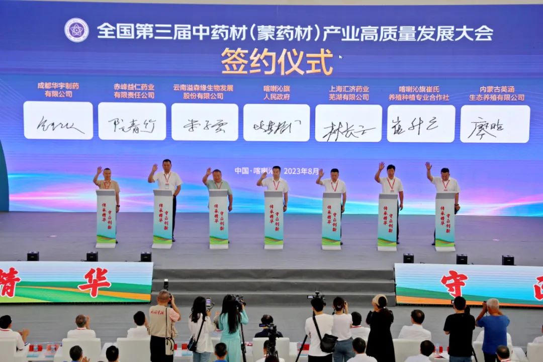 会上,成功签约了总投资40.1亿元的18个项目,发布了赤峰市中药材(蒙药材)产业信息平台,聘请了产业发展顾问,出席开幕式的相关领导共同为“全国第三届中药材(蒙药材)产业高质量发展大会”按下开幕键。