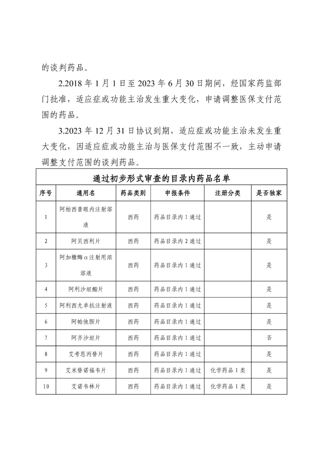 2.2023年国家基本医疗保险、工伤保险和生育保险药品目录调整通过初步形式审查的申报药品信息