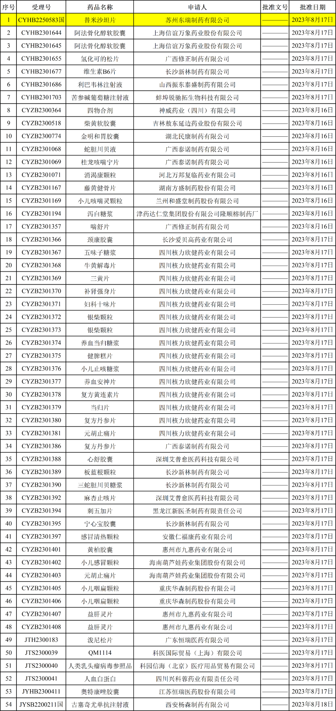 刚刚,国家药监局官网发布2023年08月22、23日药品批准证明文件送达信息,共有84个受理号获批,其中15个为一致性评价受理号(9品种),过评品种包括:
