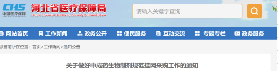 近日,河北发布《关于做好中成药生物制剂规范挂网采购工作的通知》,进一步规范中成药、生物制剂挂网采购行为,切实减轻患者用药负担。符合挂网规定的中成药、生物制剂,自2023年8月18日起正式挂网。