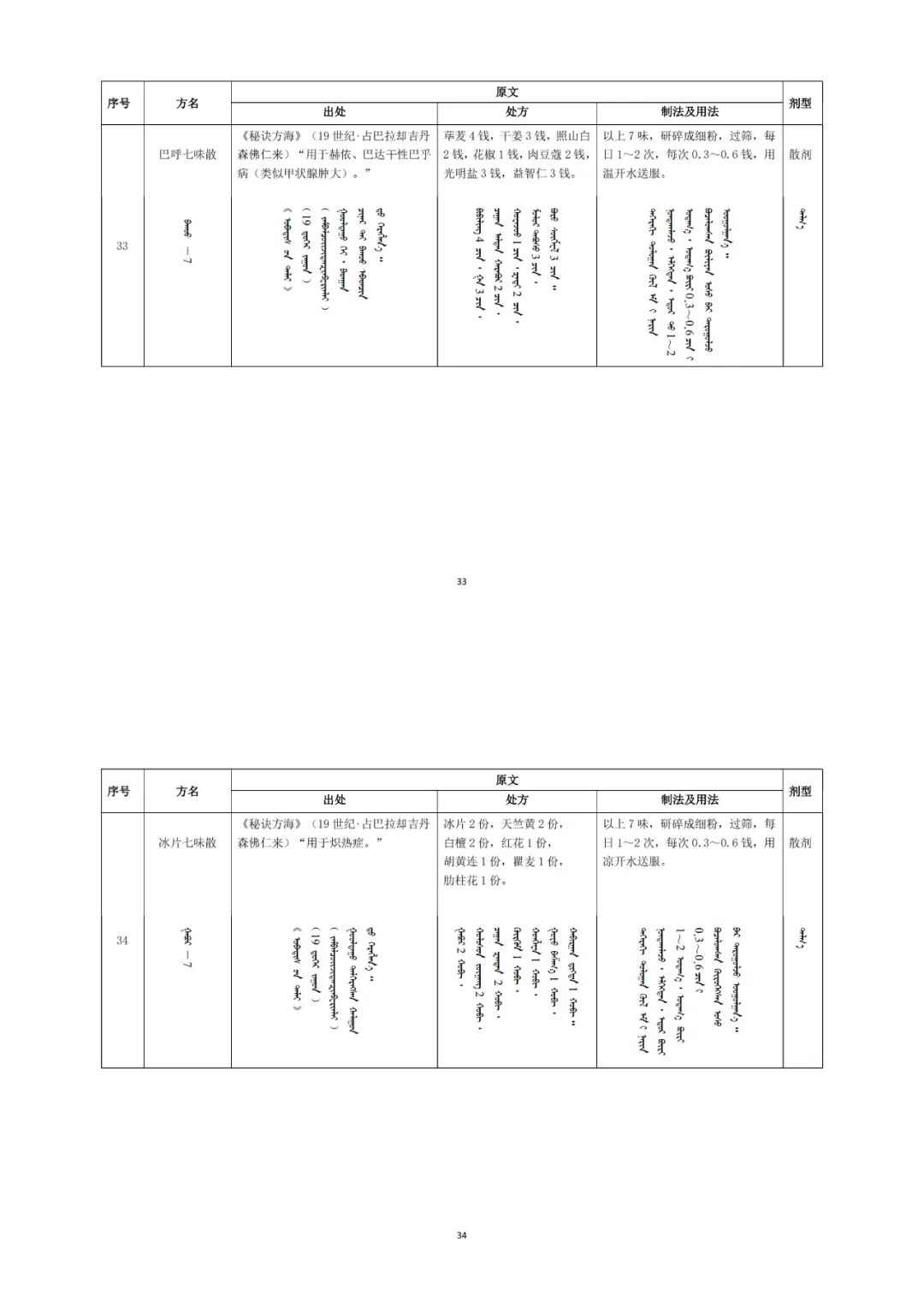 3.古代经典名方目录(第二批)-蒙医药34个