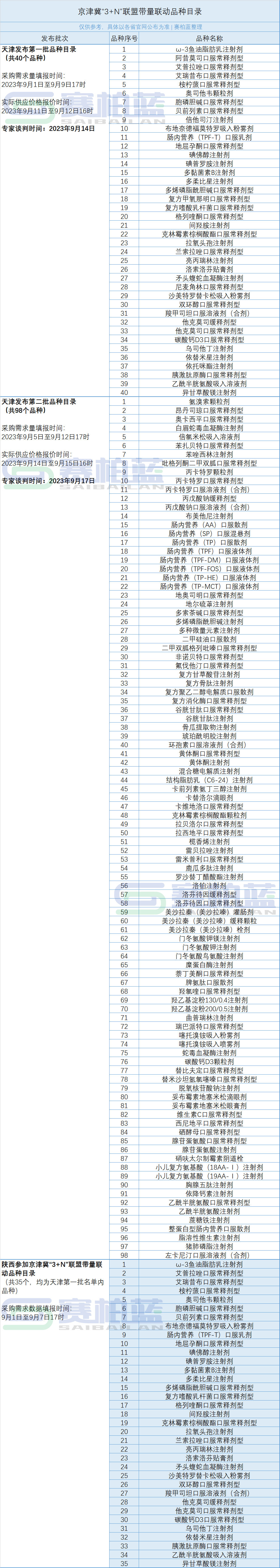 2022年11月,天津曾发布《“3+N”联盟部分西药和中成药带量联动采购和使用工作方案(征求意见稿)》;8月26日,天津发布《关于开展京津冀“3+N”联盟部分西药和中成药带量联动采购有关工作的通知》。