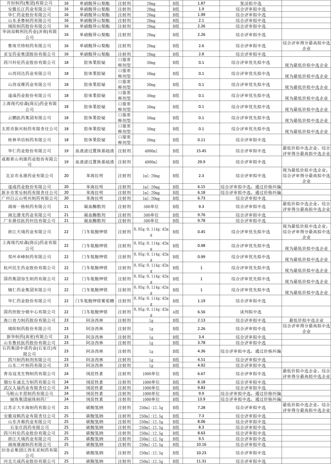 十九省(区、兵团)药品联盟采购共有151条拟中选结果公布,包括肌苷注射剂、环磷腺苷注射剂、苯唑西林注射剂等。